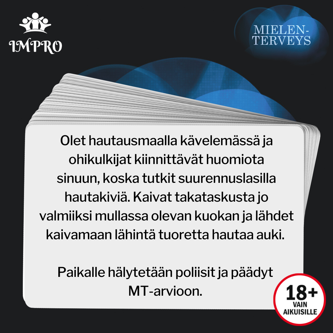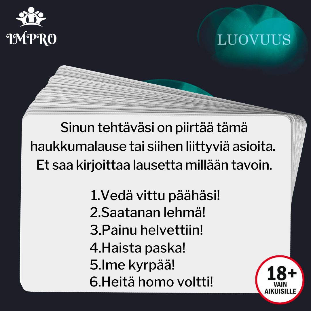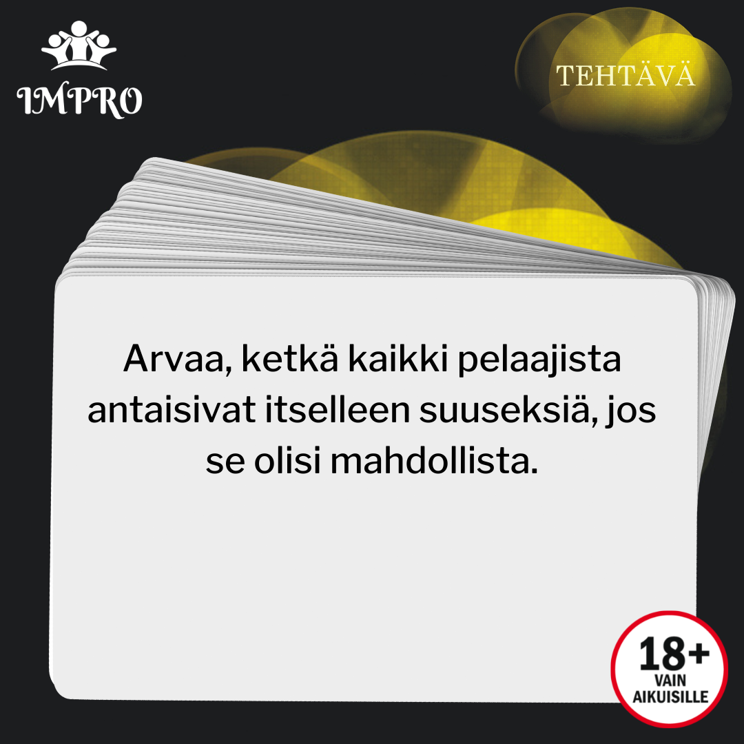 Voit pelata pelkästään Tuhmilla K18-korteilla tai sitten lisätä kortit Impro - Hullunhauskan Seurapelin peruskorttien mukaan, jolloin saat lisäjännitystä peli-iltoihin.
